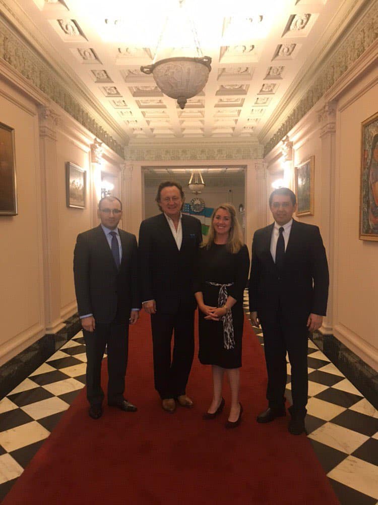 H.E. Ambassador Javlon Vakhabov of Uzbekistan, Dr. Douglas Jackson, Melisa Esposti, and Embassy Team Member